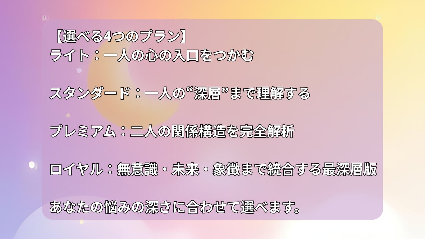 【プレミアムで読み解く内容(あなた+相手・二名分)】